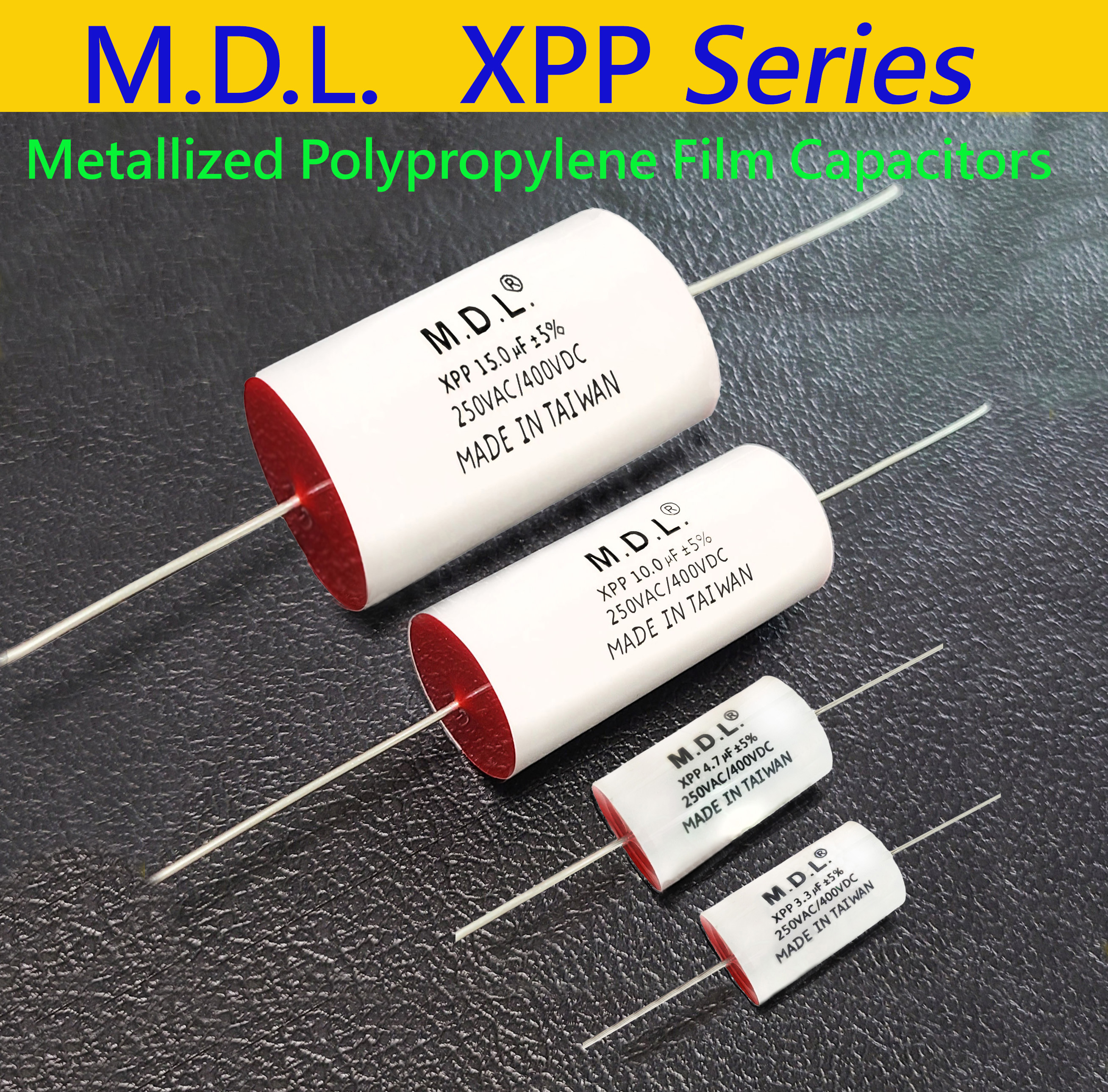 Whether you're looking for high-quality crossover capacitors for professional audio systems, communications equipment, industrial controls, or other electronic applications, M.D.L.'s Metallized Polypropylene Film Capacitors are an ideal choice.
