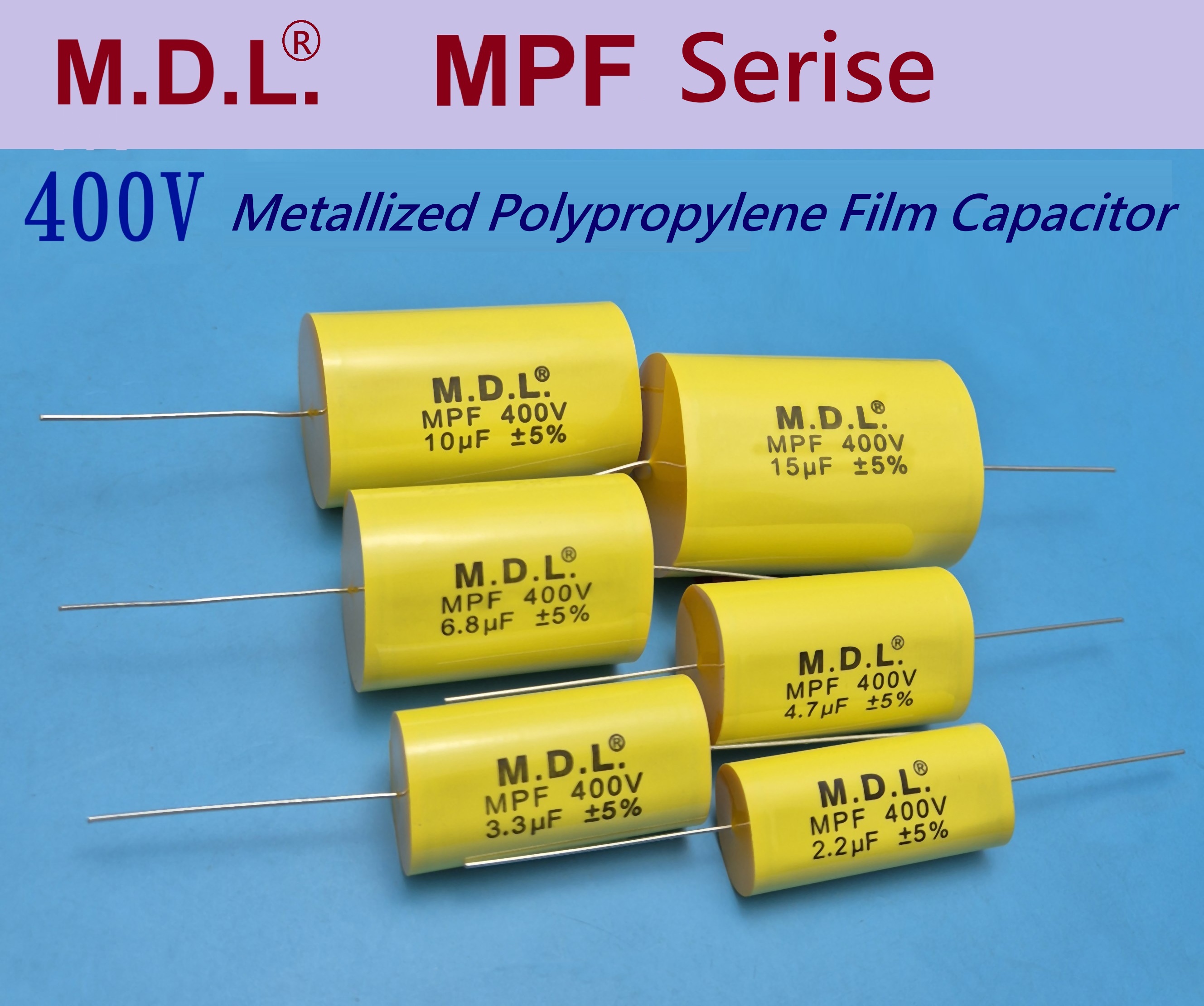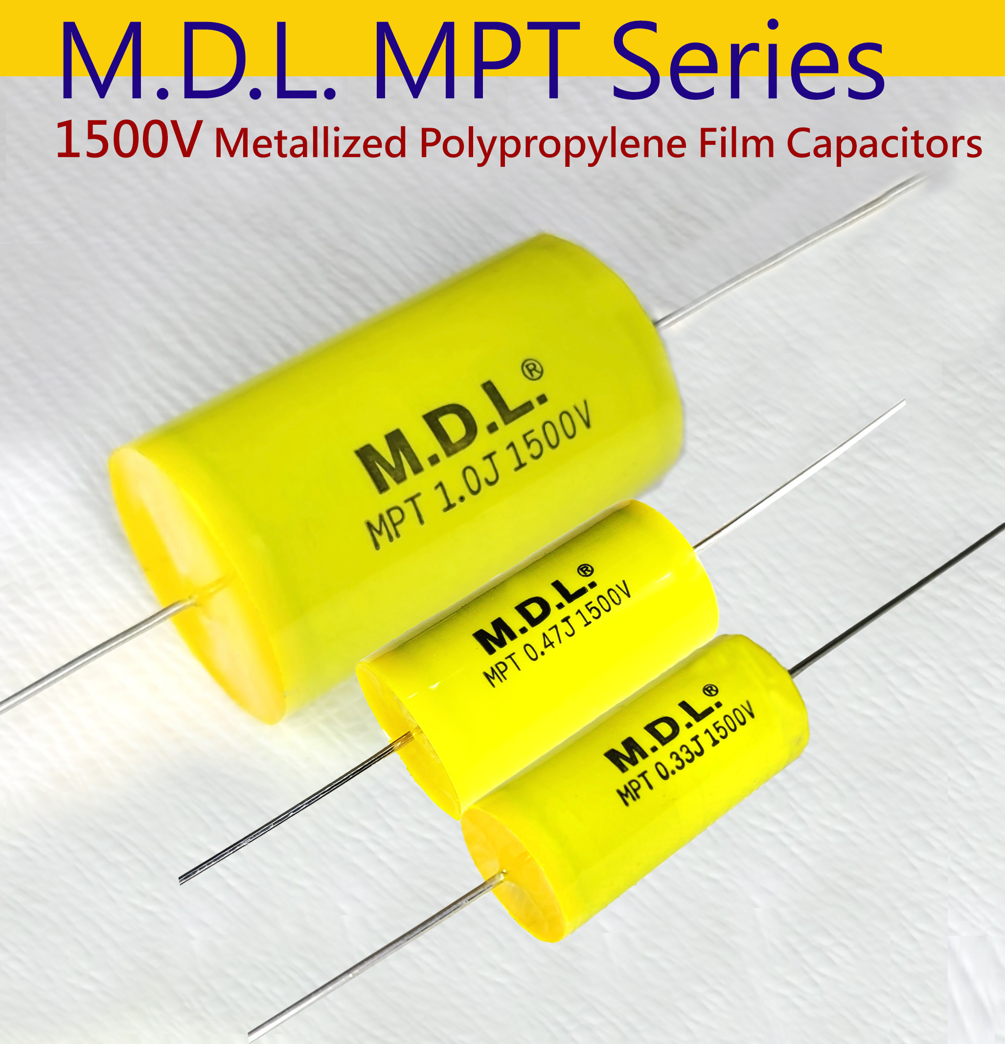 M.D.L.'s MPT Series Metallized Polypropylene Film Capacitors are manufactured with the most advanced technology and high-quality materials. After precise process and strict quality control, the product performance is stable and durable. We are committed to providing capacitors with high quality, reliability and excellent performance. These capacitors have the following advantages: