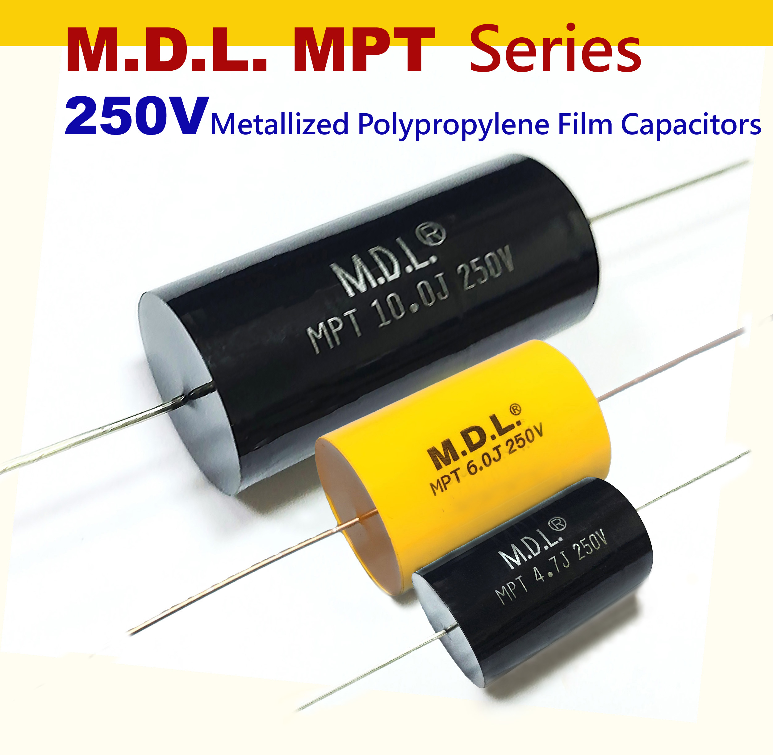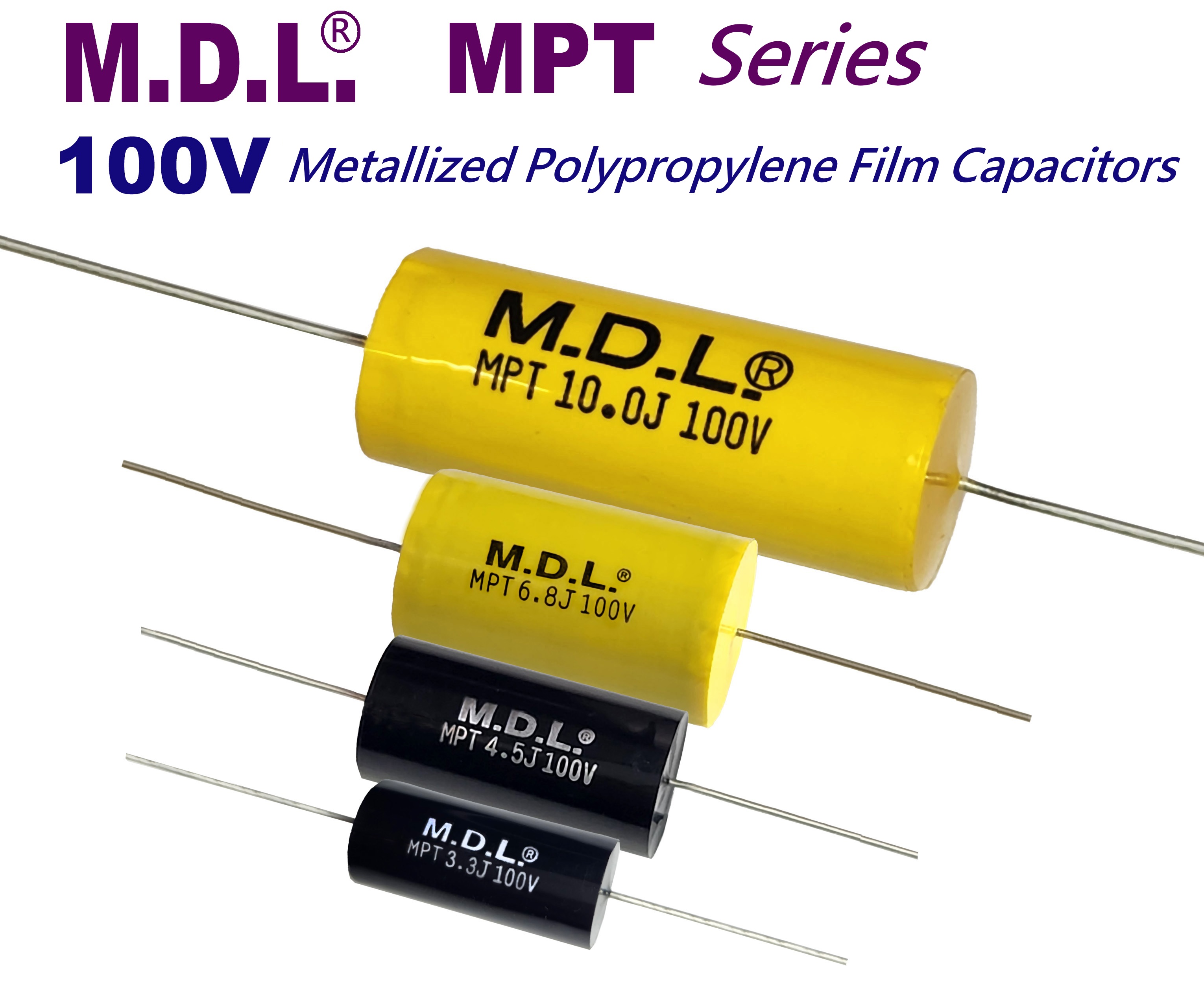 Whether you're looking for high-quality crossover capacitors for professional audio systems, communications equipment, industrial controls, or other electronic applications, M.D.L.'s Metallized Polypropylene Film Capacitors are an ideal choice.