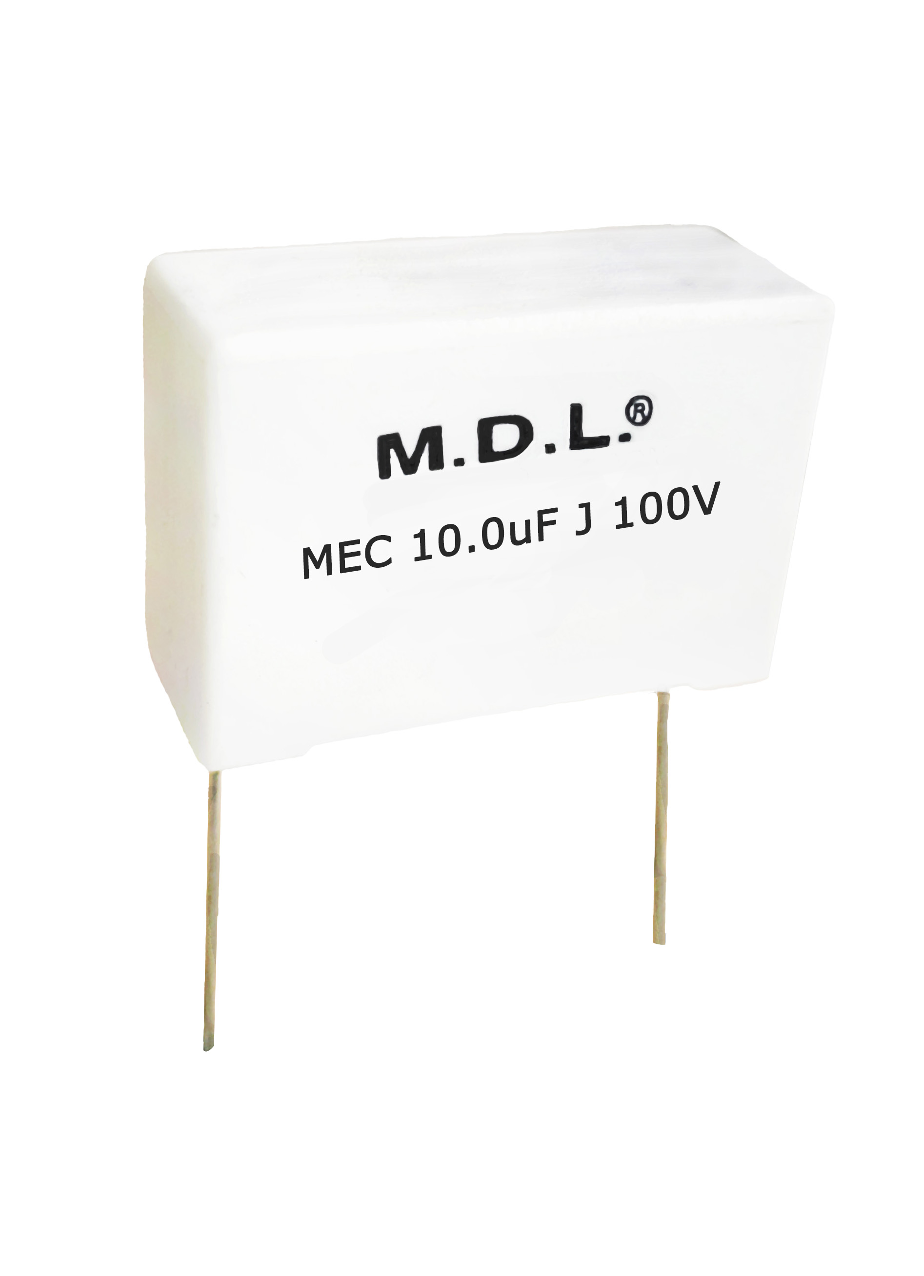 M.D.L. MEC Series metallized polyester film capacitors are high-performance electronic components, specially designed for use in crossover networks and other high-precision applications. These capacitors feature high-quality polyester film as the dielectric, and high-purity aluminum metal is plated on the film surface through a vacuum metallization process. This design not only provides excellent electrical performance, but also has excellent electro-acoustic performance and reliability. They are the ideal choice for crossover network applications, as they can offer a wide range of capacitance, high accuracy, low distortion and good temperature stability.