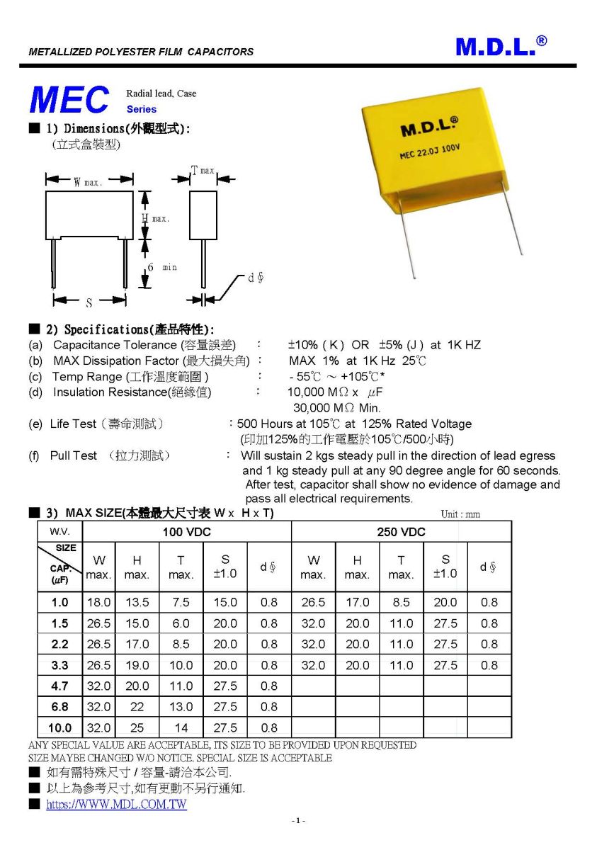 MDL MEC Serise Metallized Polyester Film Capacitors, Non-Inductive
