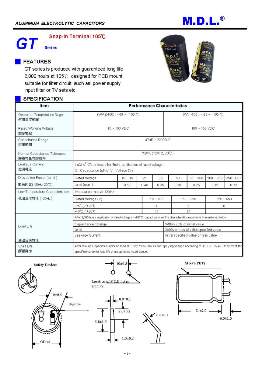 M.D.L. Electronics Industrial Co., LTD. is dedicated to providing high-quality Snap-in Terminal Type Aluminum Electrolytic Capacitors, specially designed for audio filtering with low impedance. We prioritize customer satisfaction and continuously strive to offer top-notch products and professional support.