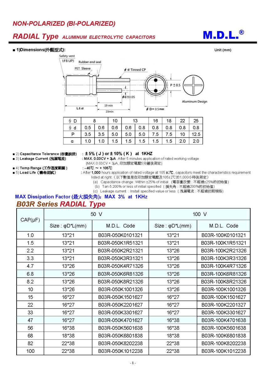 M.D.L. is professional production quality NP Capacitors & BP Capacitors of variable Radial Aluminum Electrolytic Capacitors manufacturers.