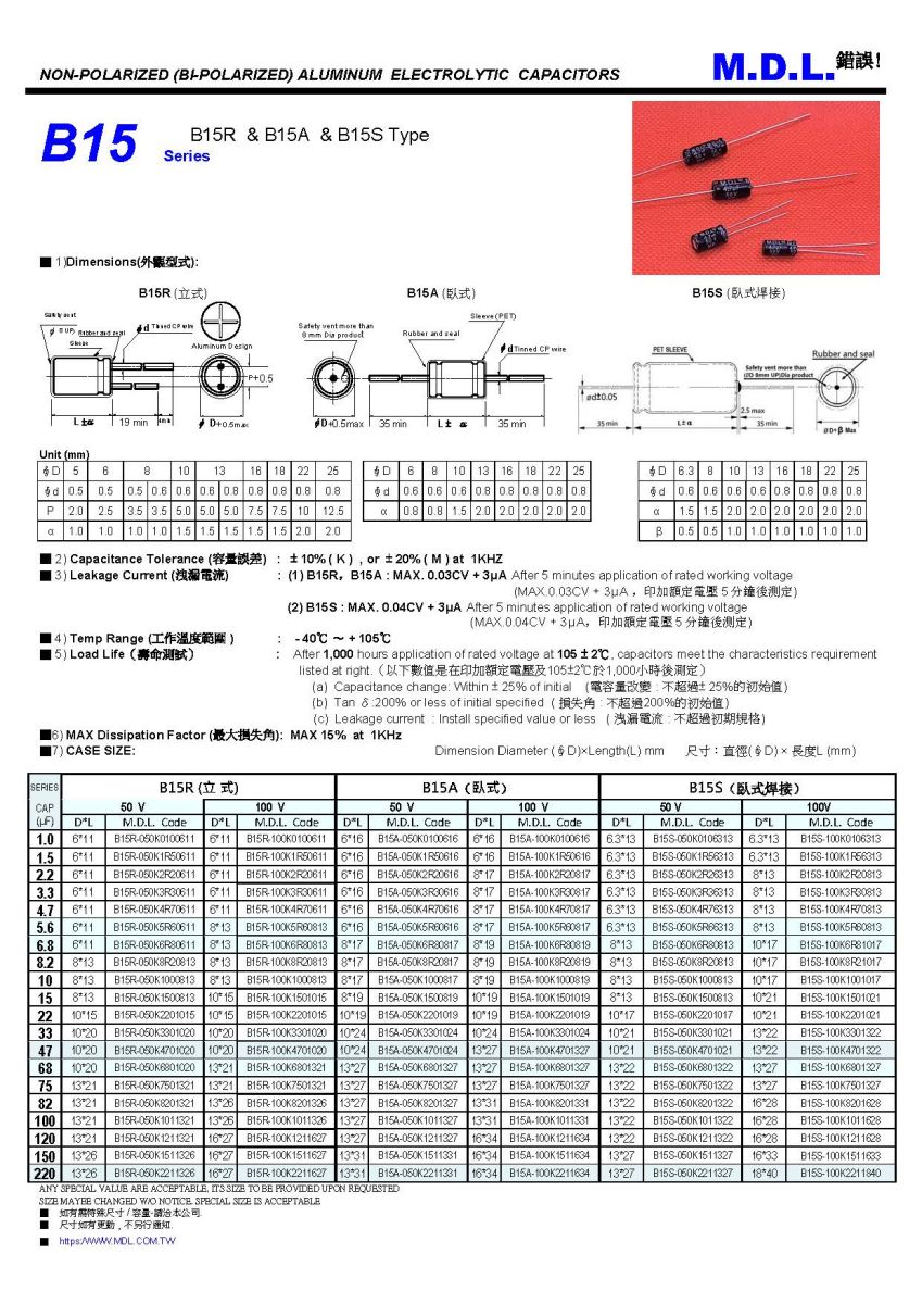 "M.D.L." NON-POLAR(Bi-Polar) ELECTROLYTIC CAPACITORS
