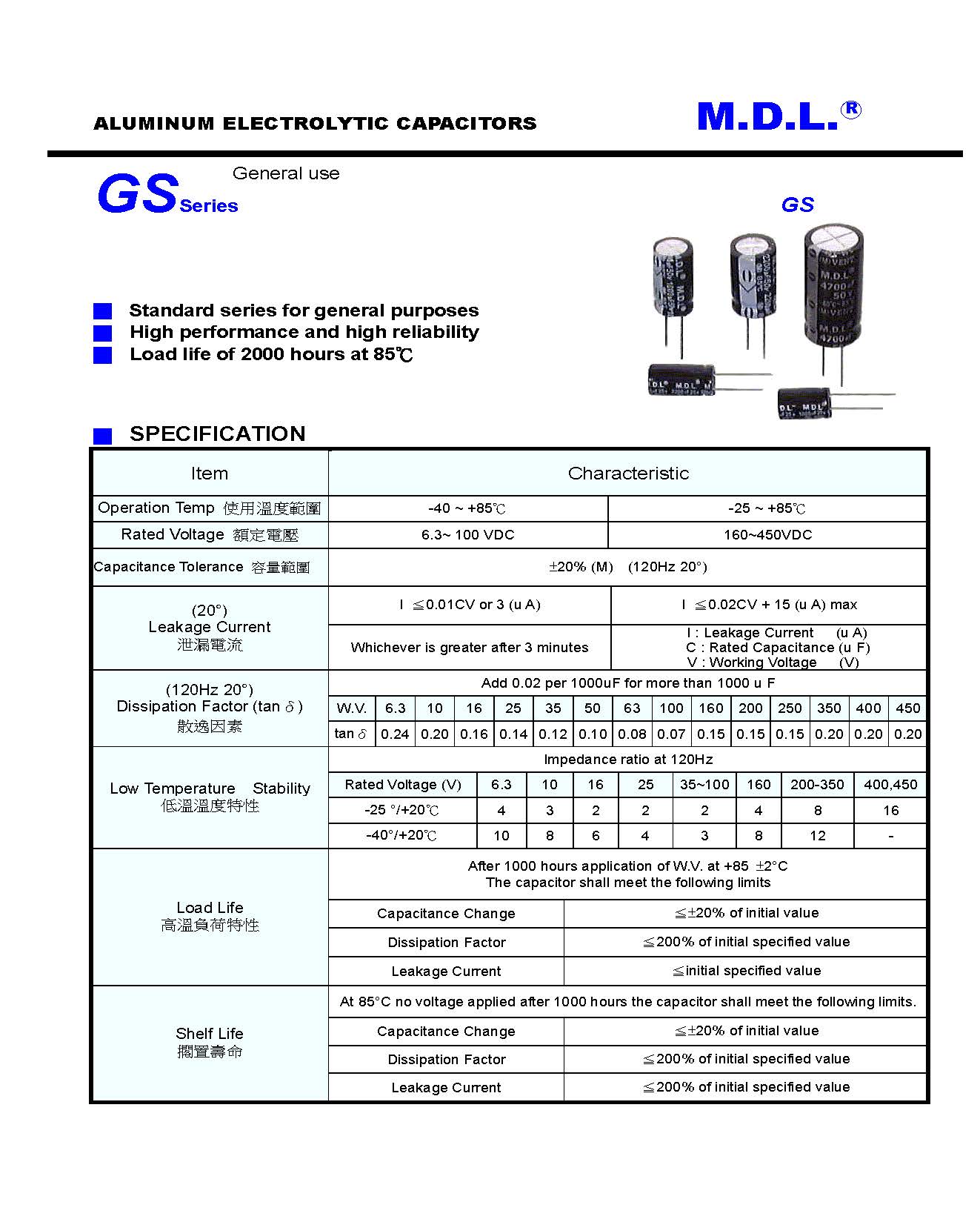 M.D.L. Professional manufacturer of Radial Type Aluminum Electrolytic Capacitors