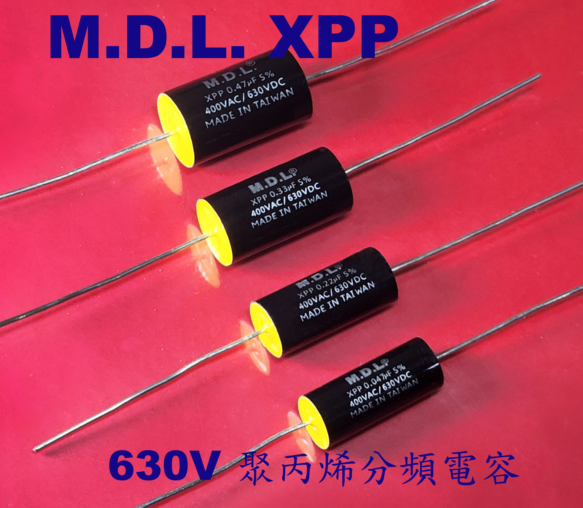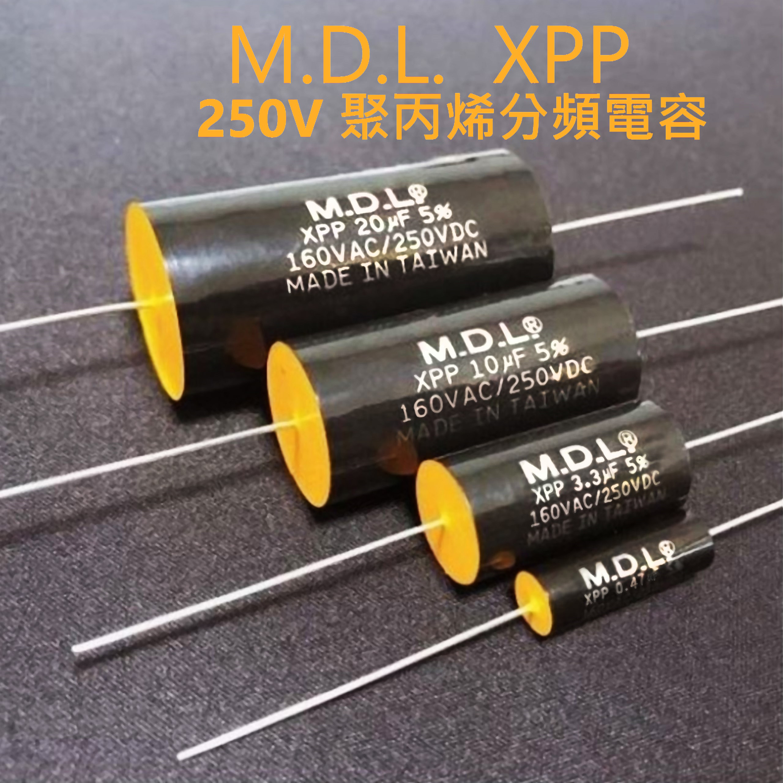 XPP系列電容是由M.D.L.推出的高品質金屬化聚丙烯薄膜電容器,採用了低阻值高性能膜料和鍍錫銅線為原材料,品質優良.外觀精美,新產品在聲音上非常有質感,高頻柔順.中頻飽滿.適用於HIFI音響,汽車喇叭,大功率音響分頻器等。