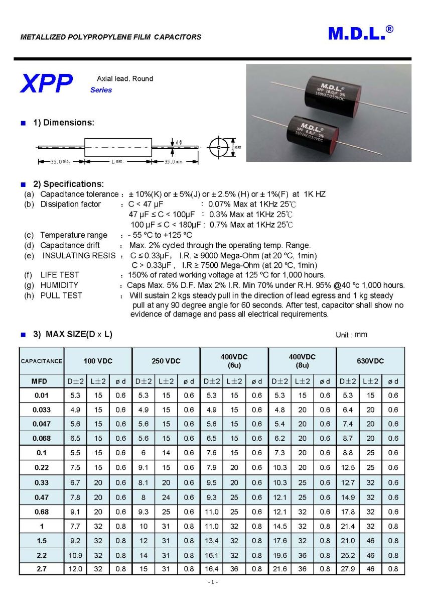 XPP Series Metallized Polypropylene Film Capacitors, which possesses high quality, is launched by M.D.L.