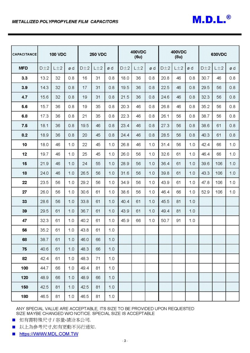 Whether you're looking for high-quality crossover capacitors for professional audio systems, communications equipment, industrial controls, or other electronic applications, M.D.L.'s Metallized Polypropylene Film Capacitors are an ideal choice.
