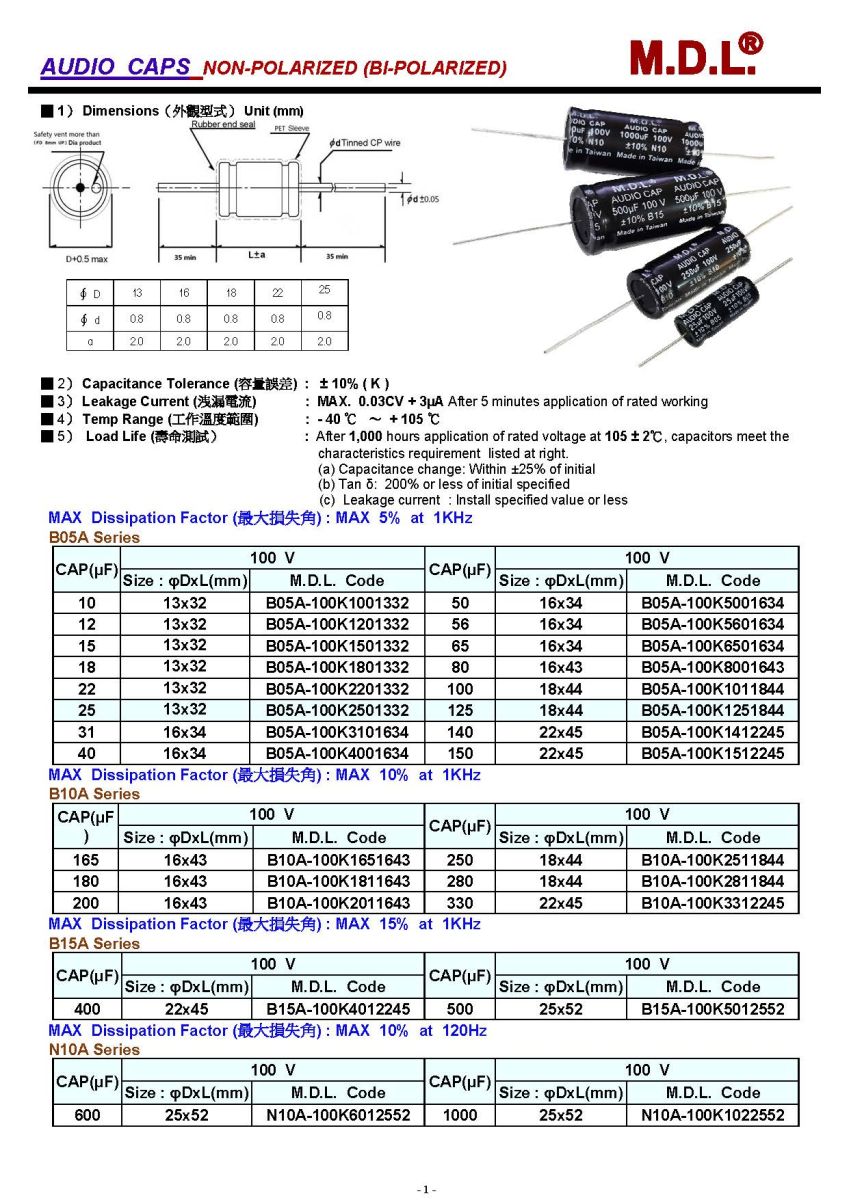M.D.L. is professional manufacturer of high-quality Audio Capacitors NP BP of variable Axial Type Aluminum Electrolytic Capacitors.