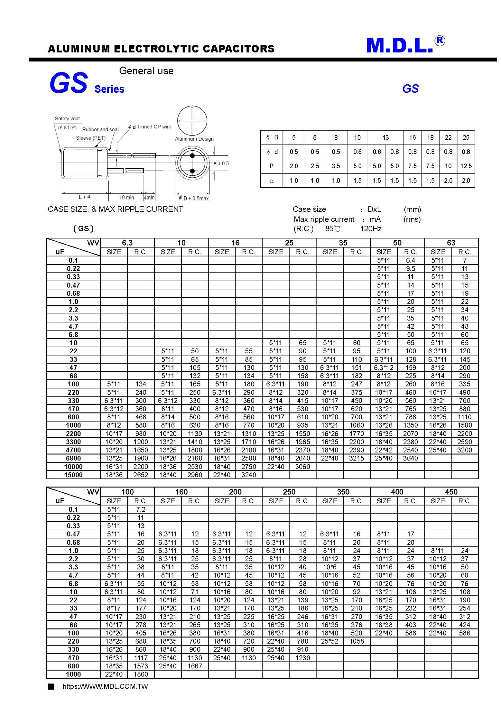 W.V. : 6.3V ~ 450V