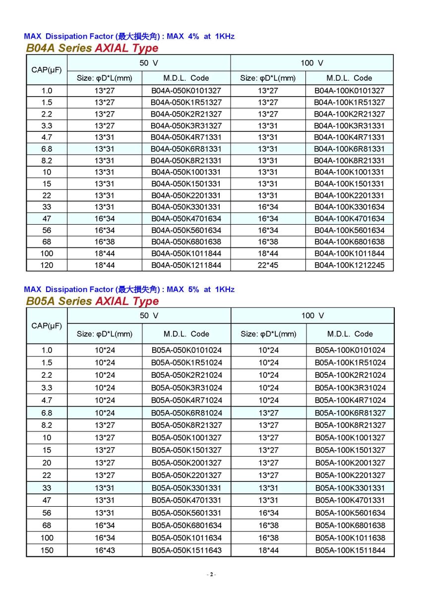 | B05A | BP Series AXIAL Type 1KHz DF<5% Sound Articles |