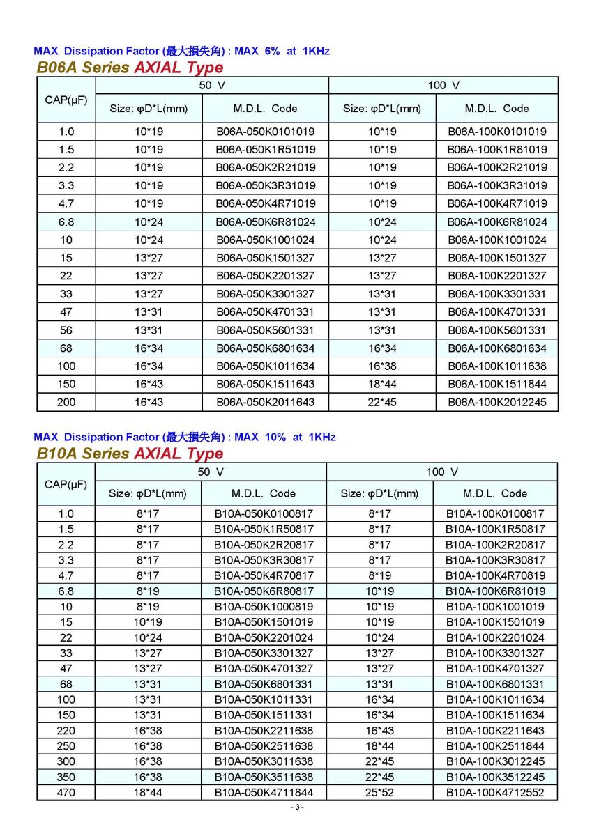 | B03A | BP Series AXIAL Type 1KHz DF<3% Sound Articles |